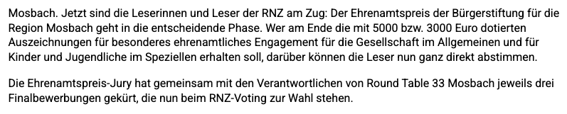 Textauszug der Rhein-Neckar-Zeitung: